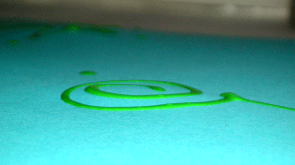 Die Acryllinie bleibt durch ihren satten Farbauftrag erhaben stehen.
