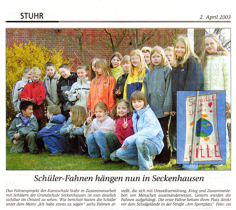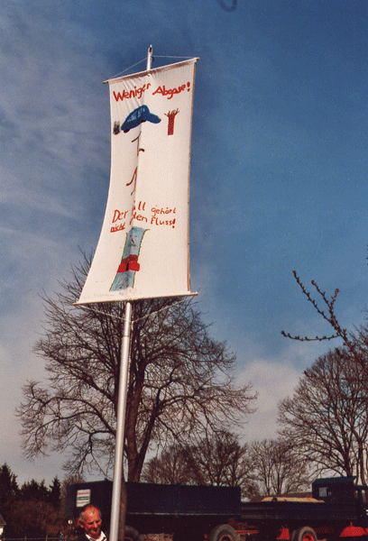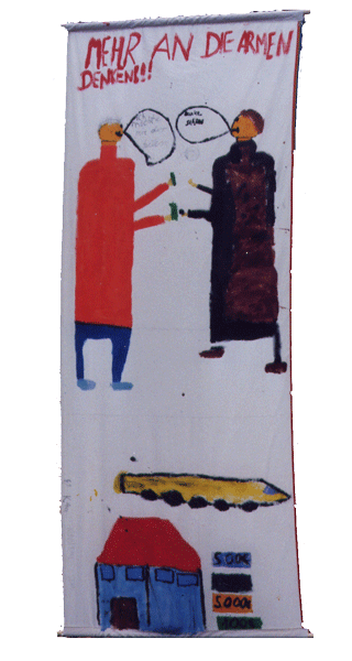 Am Ende hingen fünf 3 Meter lange Fahnen an verschiedenen Plätzen in der Gemeinde und brachten die Menschen ins Gespräch.