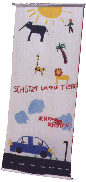 So sollte ein Teil des Schulhofes verschönert werden, und gleichzeitig das Gemeinschaftsgefühl in den Klassen, das Zugehörigkeitsgefühl zur Schule und dem Kindergarten und das Zusammengehörigkeits-Gefühl von Schule und Kindergarten gestärkt werden.